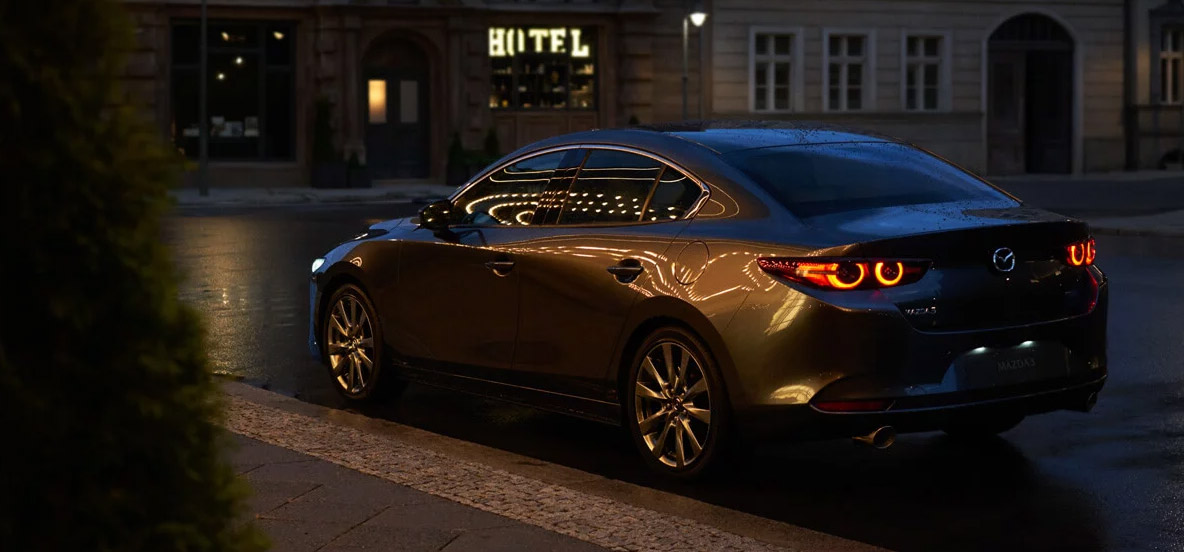 All New Mazda3 menampilkan desain single motion yang sederhana dalam tampilan keseluruhan, menunjukkan bagaimana cahaya dan bayangan yang berefleksi di atas badannya menghasilkan ekspresi penting dan dramatis yang jauh lebih baik dibandingkan bahasa desain sebelumnya.